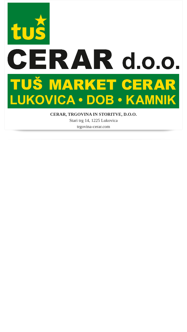 CERAR, TRGOVINA IN STORITVE, D.O.O.